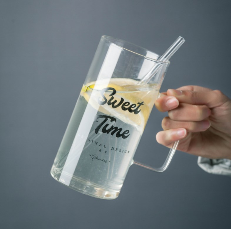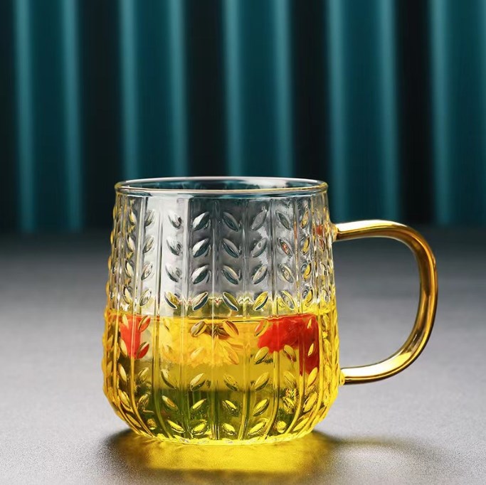 带把麦穗高硼硅玻璃水杯大容量家用果汁杯透明玻璃凉水杯