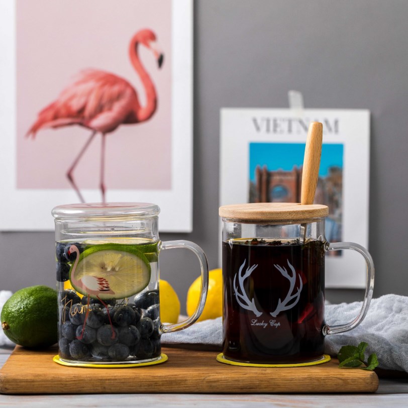 玻璃茶杯加厚带盖透明泡茶圆趣杯耐热高硼硅玻璃杯花茶杯办公杯