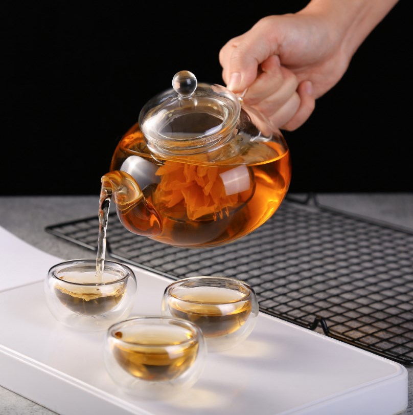 耐高温全玻璃花茶壶六人壶过滤泡茶壶红茶功夫茶具套装小容量