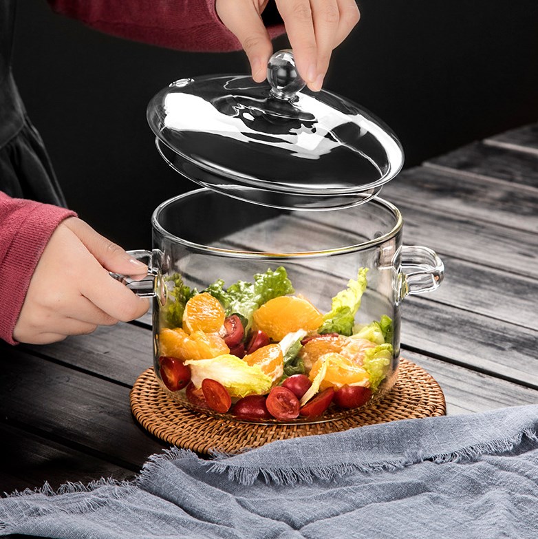 大容量养生锅耐高温烧锅泡面家用煲高汤锅带盖汤桶双耳玻璃锅锅具