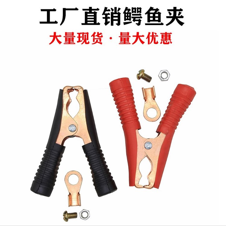 汽车电瓶充电夹 电池夹 100A黑红一对90cm镀铜鳄鱼夹