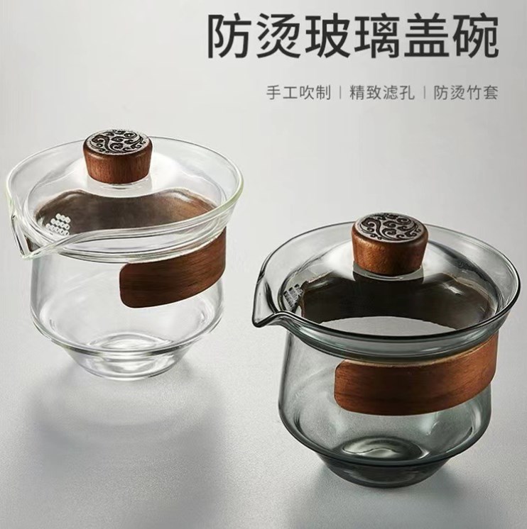 手抓盖碗透明泡茶壶透黑玻璃功夫茶具套装高硼硅玻璃大号敬茶杯