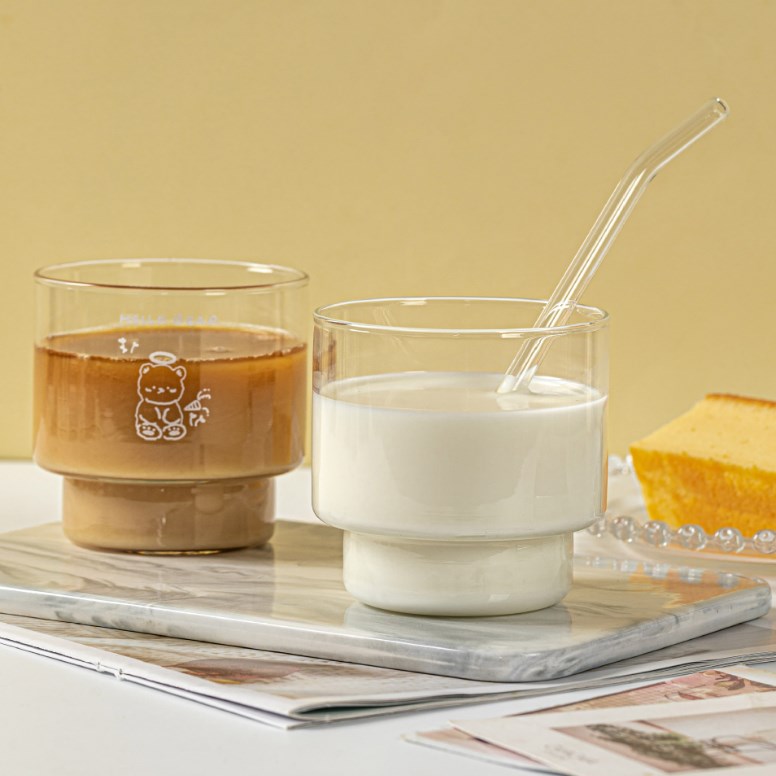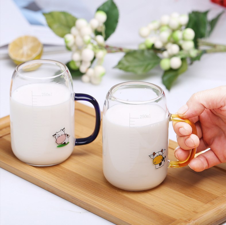 防爆裂儿童牛奶杯玻璃杯量杯带刻度水杯酸奶杯刻度杯牛奶杯早餐杯