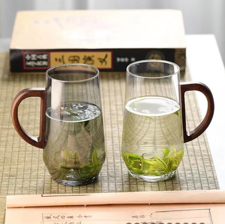 日式猴魁胡桃木把绿茶杯高硼硅耐热玻璃泡茶杯大容量水杯花茶杯子