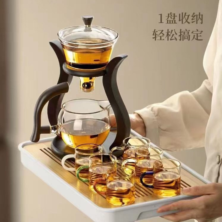 磁吸半自动玻璃泡茶壶套装懒人冲茶器办公室家用一体功夫茶具套装