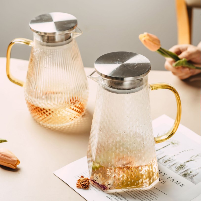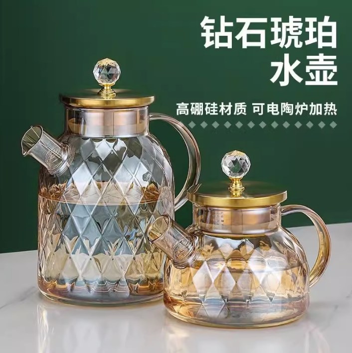 北欧风大容量琥珀色冷水壶轻奢钻石凉水壶高硼硅玻璃果汁花茶壶