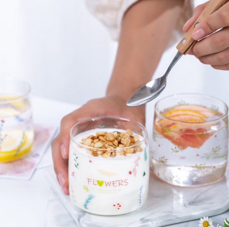 简约森系ins玻璃杯耐热家用酸奶杯少女可爱清新牛奶早餐杯