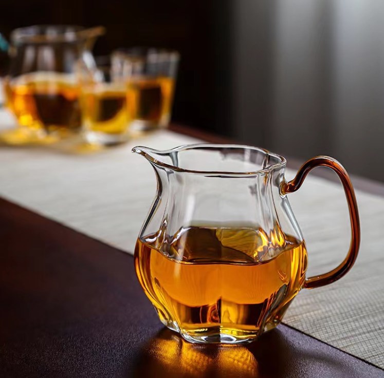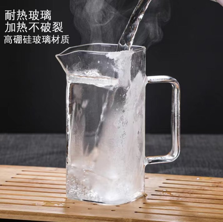 锤纹玻璃侧把公道杯办公室家用茶海分茶器高硼硅玻璃可加热公道杯