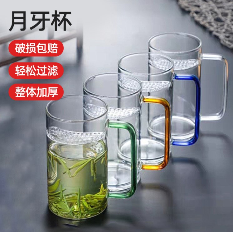 月牙杯自带过滤泡茶杯办公室家用高硼硅玻璃泡茶杯绿茶杯
