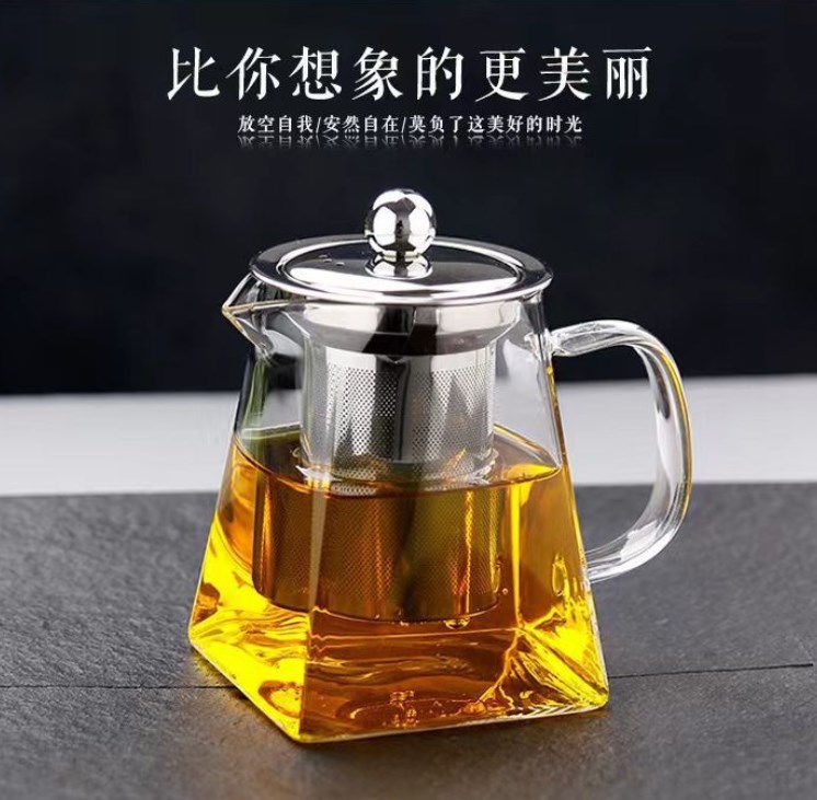 四方玻璃煮茶壶不锈钢过滤玻璃壶高硼硅玻璃电陶炉加热玻璃水壶
