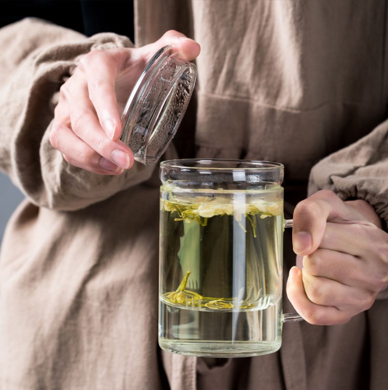 绿茶杯茶滤一体绿茶泡茶杯过滤方形花茶杯高硼硅玻璃透明月牙