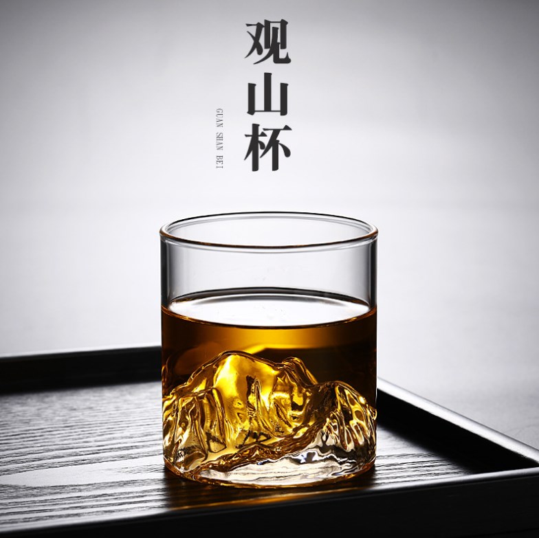 日式复古观山玻璃杯子威士忌酒杯茶水 高硼硅耐热家用咖啡杯茶具