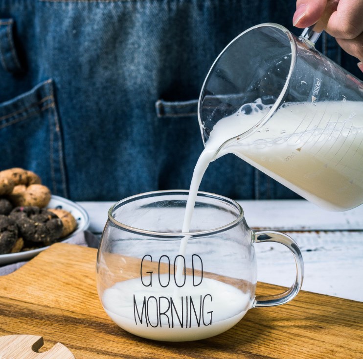 耐热玻璃带把牛奶杯早餐杯good morning杯麦片杯微波炉玻璃水杯