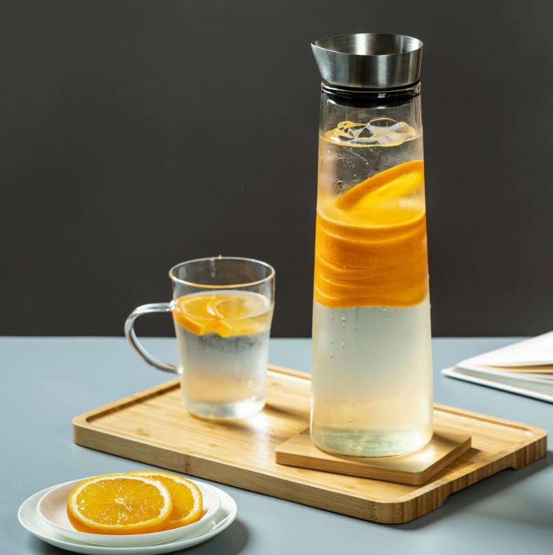 北欧风日式竹盖玻璃冷水壶耐热耐高温大容量茶壶防爆凉水壶果汁壶