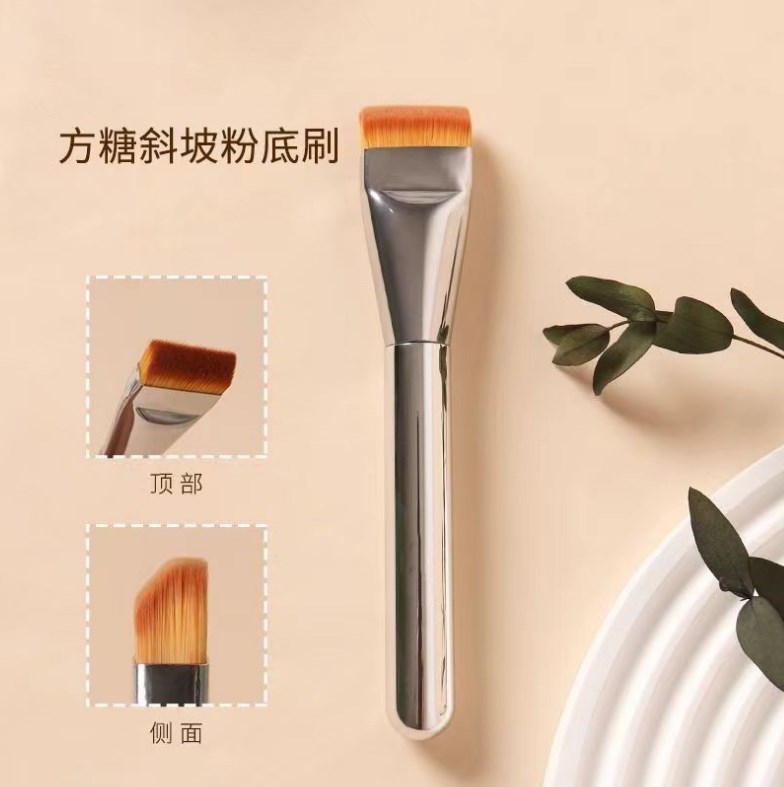 无LOGO191化妆平头粉底铜管刷人造纤维实木刷柄美妆化妆工具